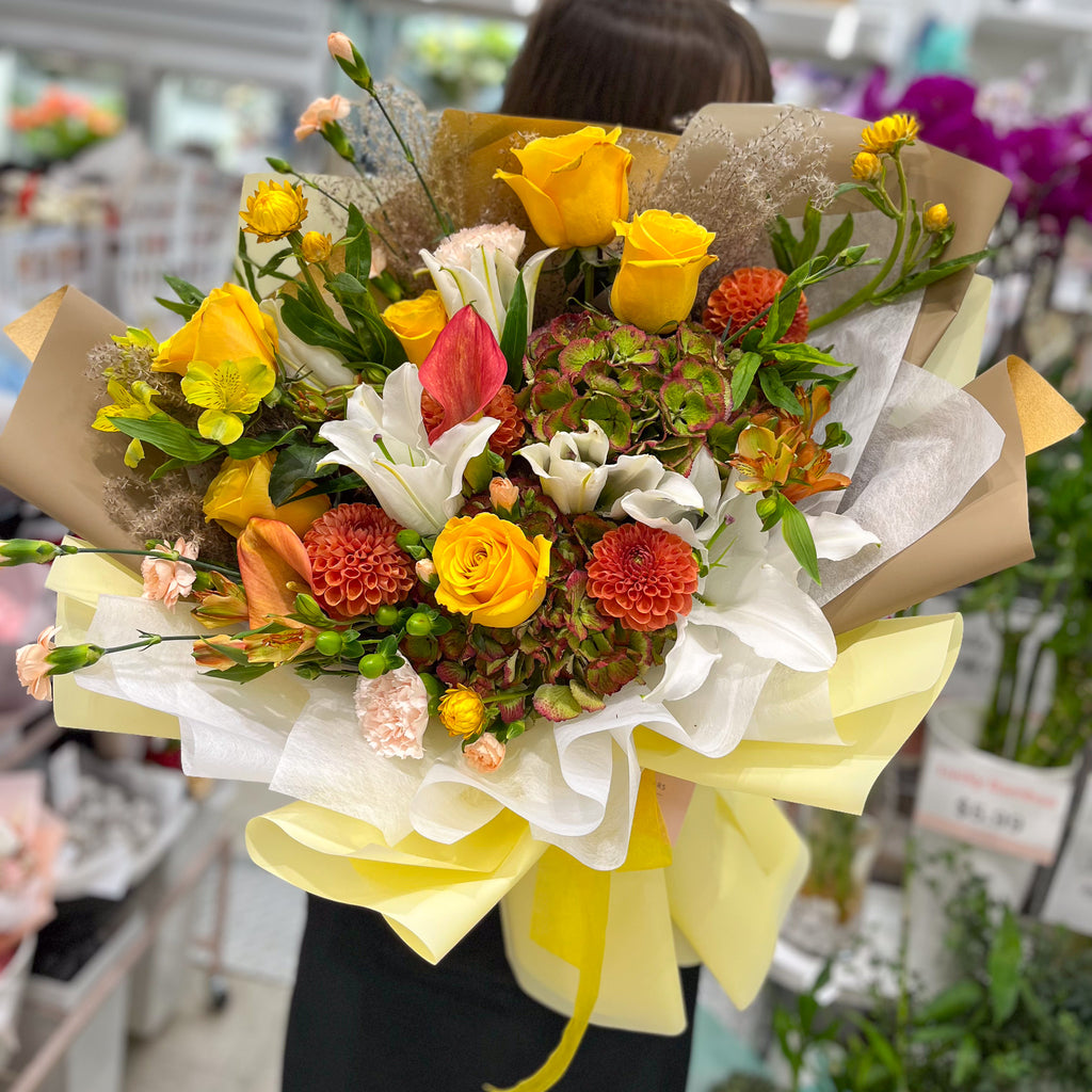 Bouquets/flowers may vary slightly from the photos, as we use the freshest in-season blooms. Photos are for style reference only and may not reflect the exact flowers or quantity. Each bouquet is designed within your selected price range. Wrapping and tone will match the photo; accessories are sold separately.