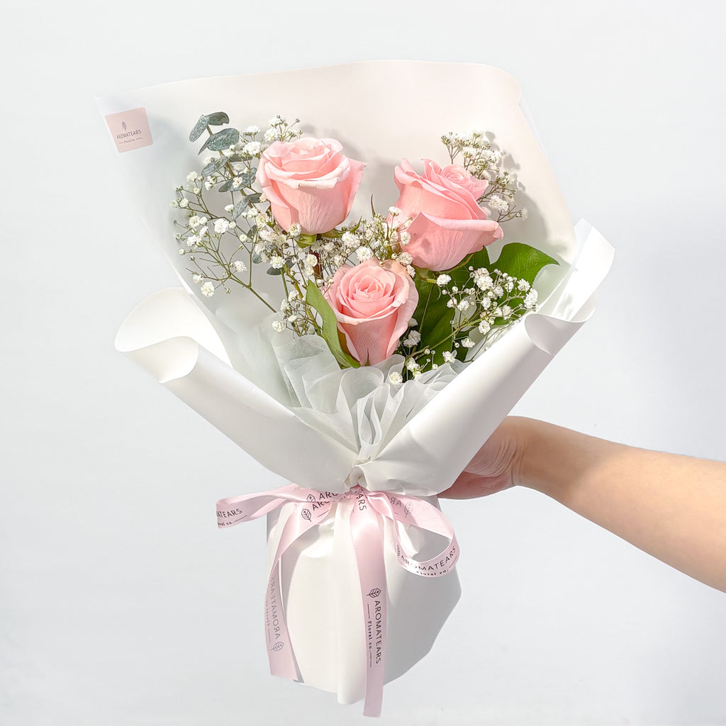 Say "I love you" in a timeless and elegant way with our Fresh 3 Rose Bouquet. A bouquet of three fresh roses is the perfect gift for those who want to express their feelings in a simple yet meaningful way. Three roses symbolize the past, present, and future of a relationship, representing love that is built to last. Our roses are hand-picked and specially chosen for their vibrant colors, and carefully arranged to create a beautiful, long-lasting bouquet that will bring joy to any space.